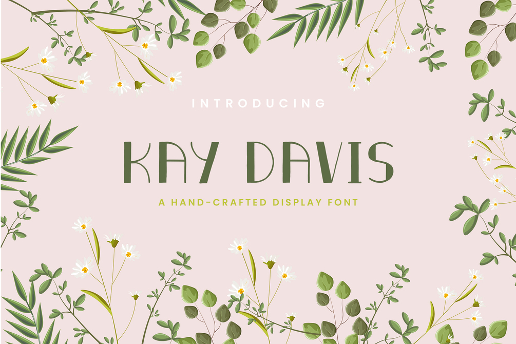 Kay Davis is a hand-drawn display font. It was inspired by watching a coworker doodle during creative design meetings. It has an organic feel to it and best pairs with simple san serif fonts.