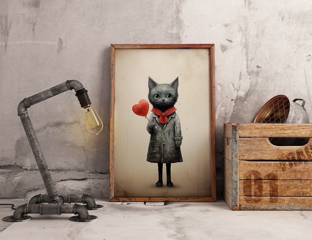 Cat Printable Valentines Day Card | Digital Download | JPG | Wall Art | Home Decor | High Quality Print