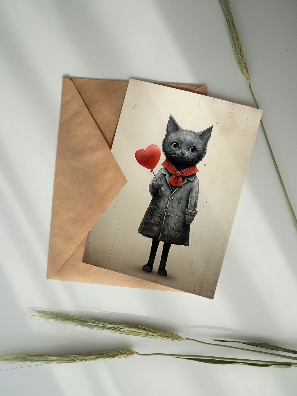 Cat Printable Valentines Day Card | Digital Download | JPG | Wall Art | Home Decor | High Quality Print